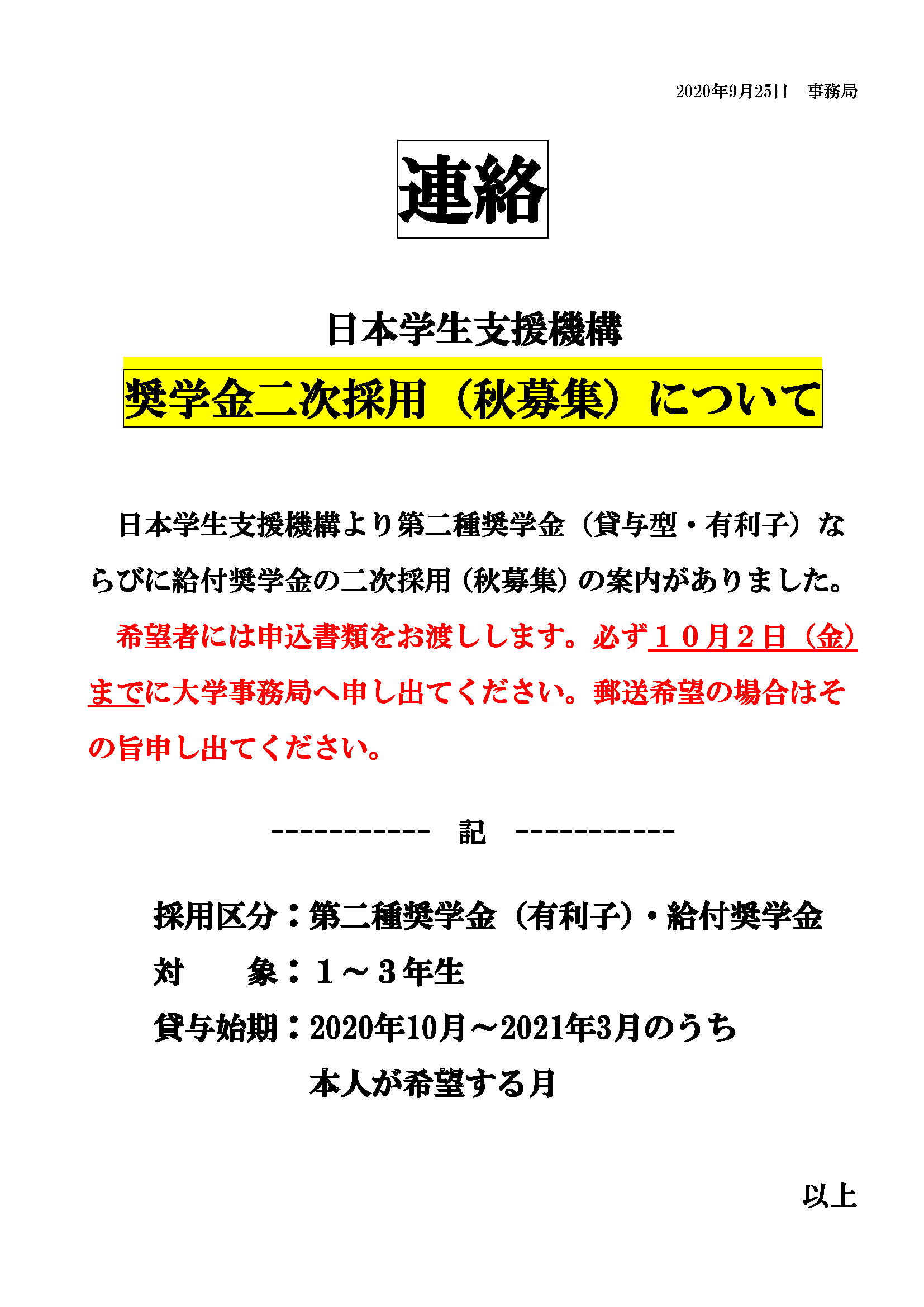 あ、短大、中校・高校はこれまで通り募集してます。