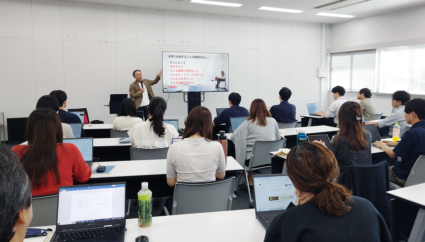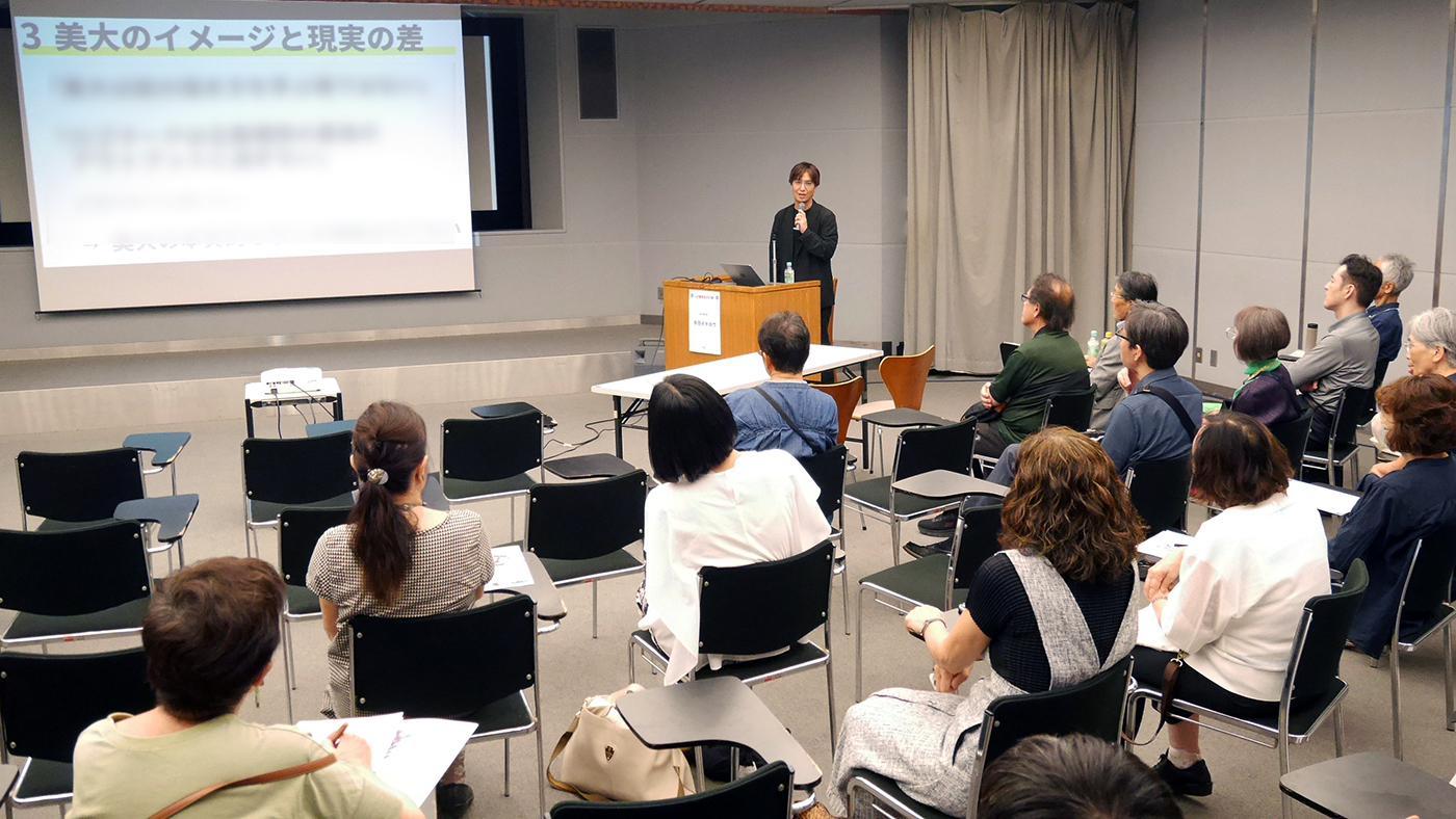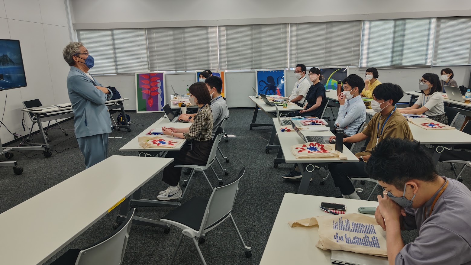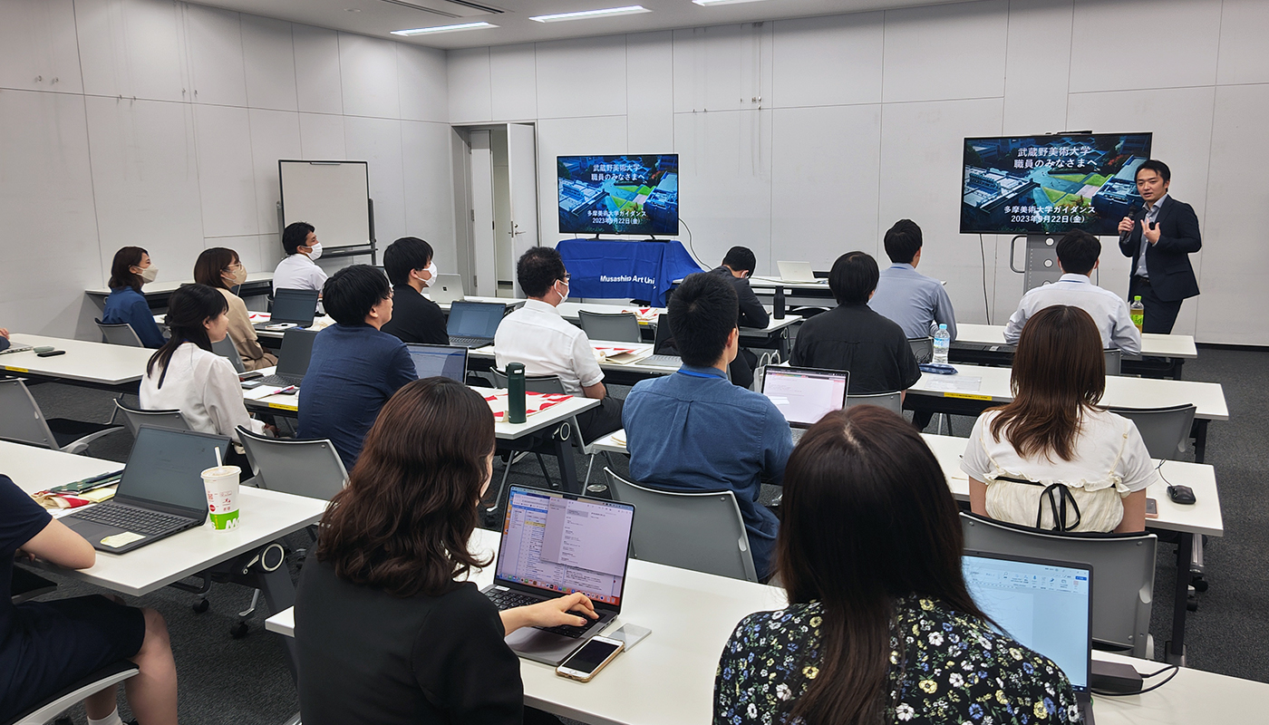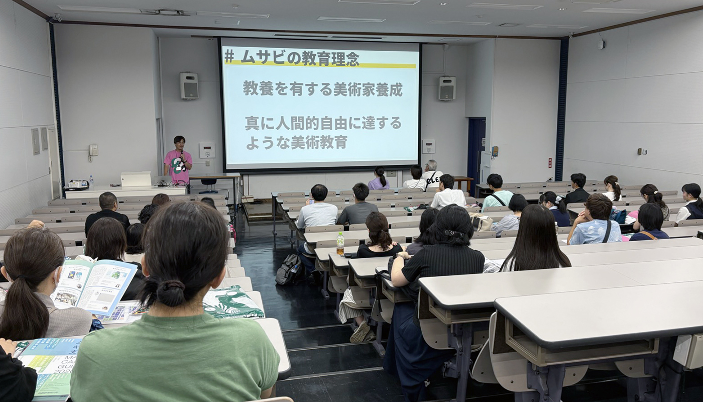 大学によっては他部署職員に1時間ぐらいの研修をしてポイっと「高校説明会に行ってこい。これも業務」とやってるところもあるんですが、高校生にとってそんなアンサービスなことはなく、ムサビや美大、美大生のことを学んだ上で自分のキャリアと重ねて高校生や親御さんと接してほしくて、半年間月1で研修会を開いてます。