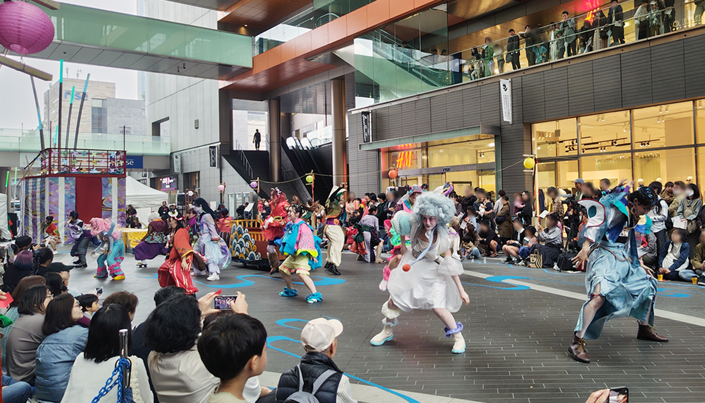 「タマリバーズ」は、多摩美術大学上野毛キャンパスで学ぶ学生たちが二子玉川ライズ開業イベントにパフォーマーとして参加したことをきっかけに、以降毎年開催しているタマビと二子玉川ライズによる地域連携アートプロジェクトです。今年が第14回公演で、2016年度からはPBL科目として産学連携カリキュラムになっています。