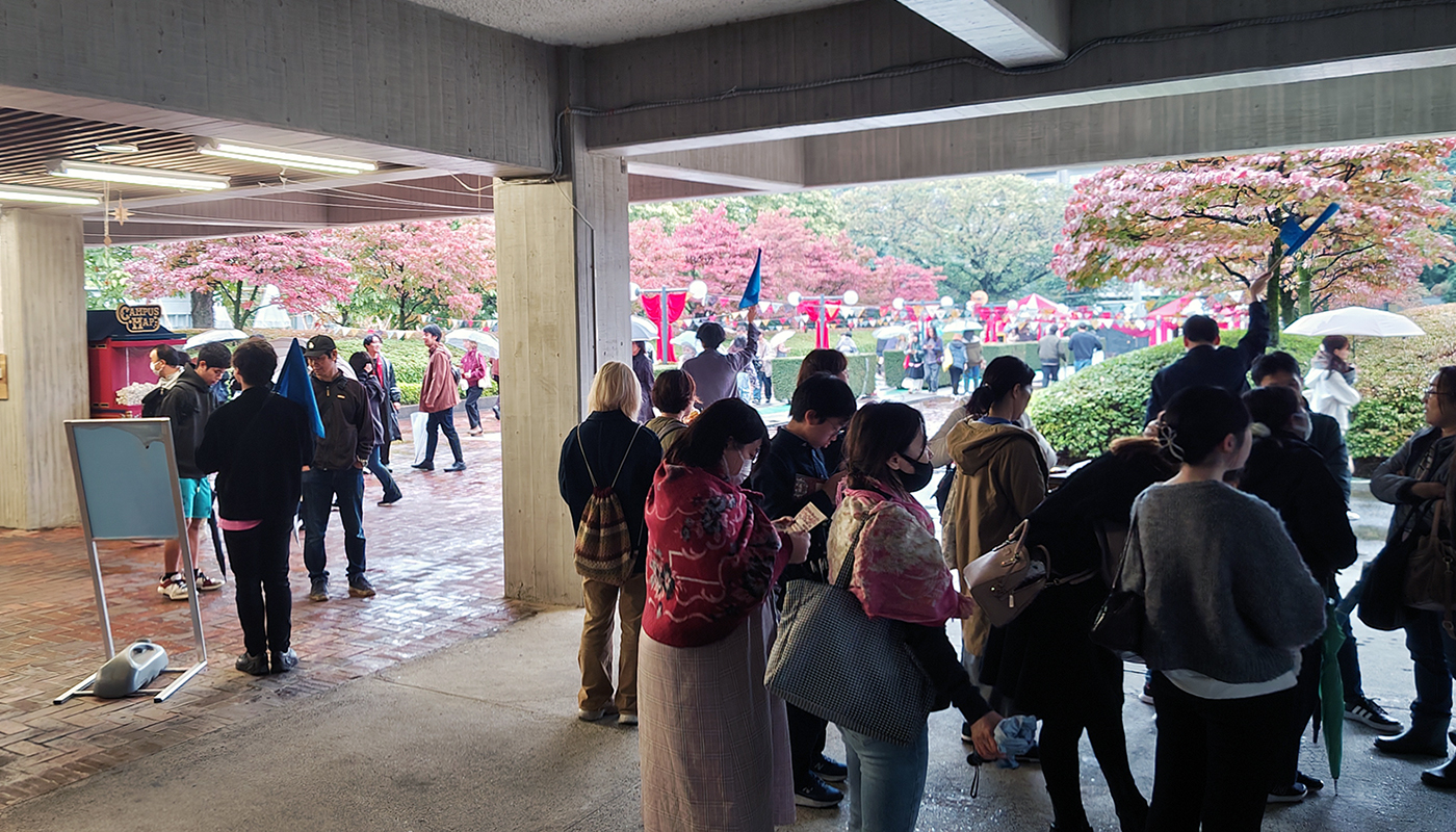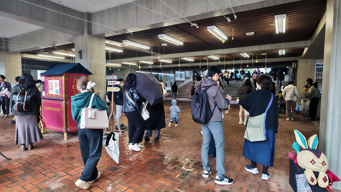 雨だと中央広場で予定されてたパフォーマンス系企画は、屋根のある2号館下に移動して開催されます。