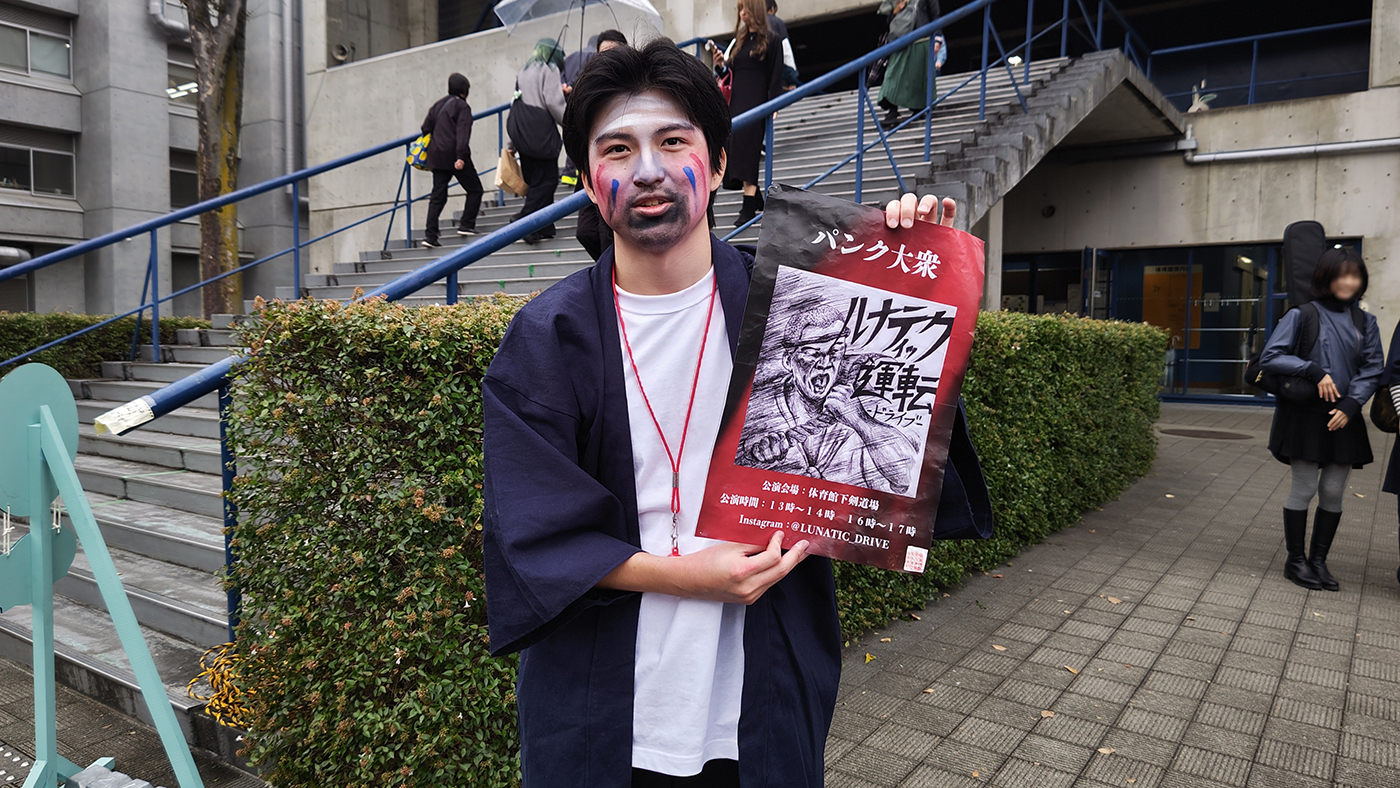体育館を出ようとしたら、「1階剣道場でパンク大衆「ルナティック運転」やってます!」と宣伝された。