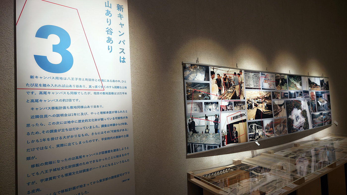 東京造形大学キャンパスの今と昔を紹介する展示。
