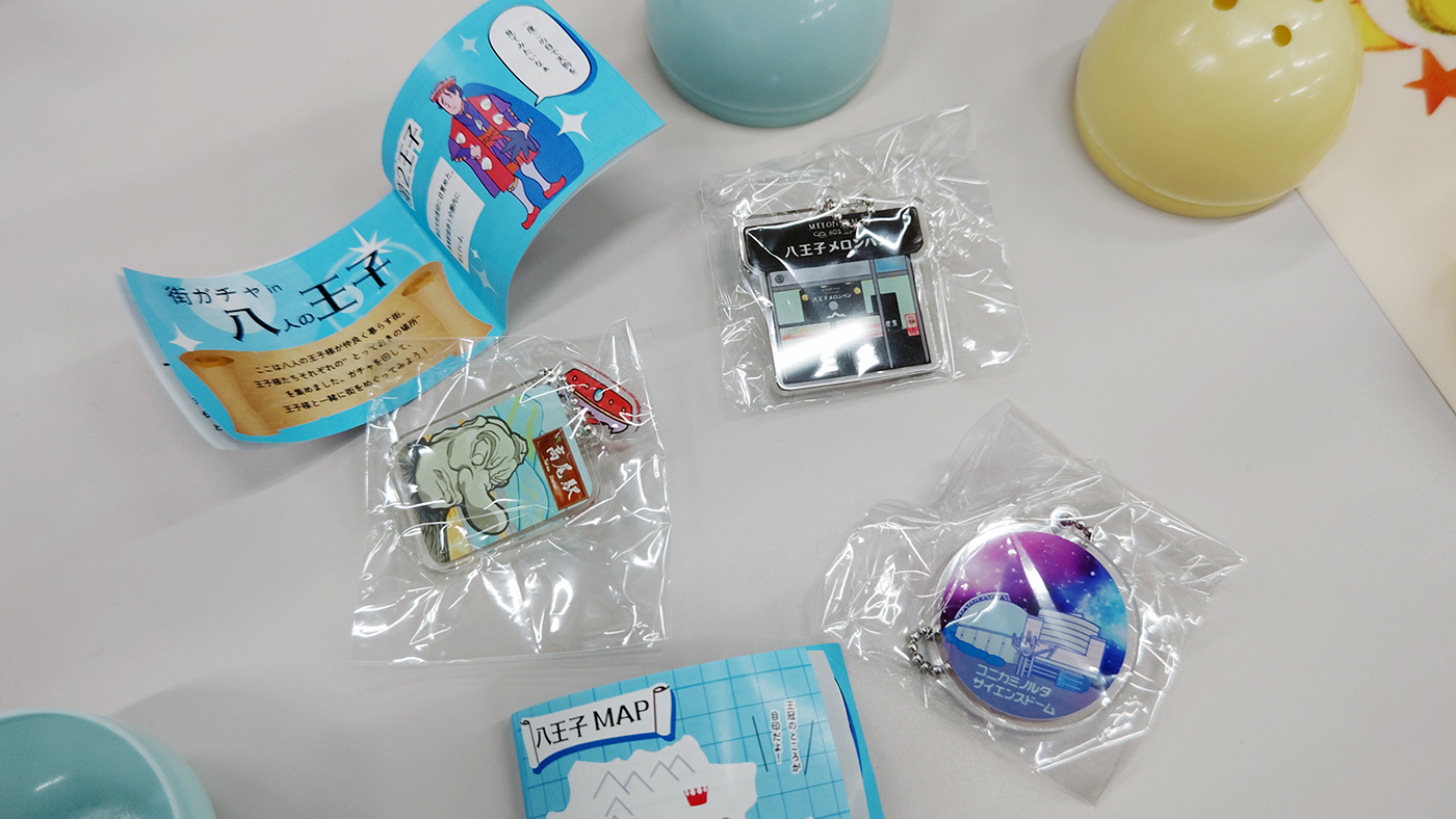 JTBとタマビが協働して、八王子の観光スポットや地元で愛されるお店をモチーフにしたアクリルキーホルダー全10種のガチャガチャを作ったのです。