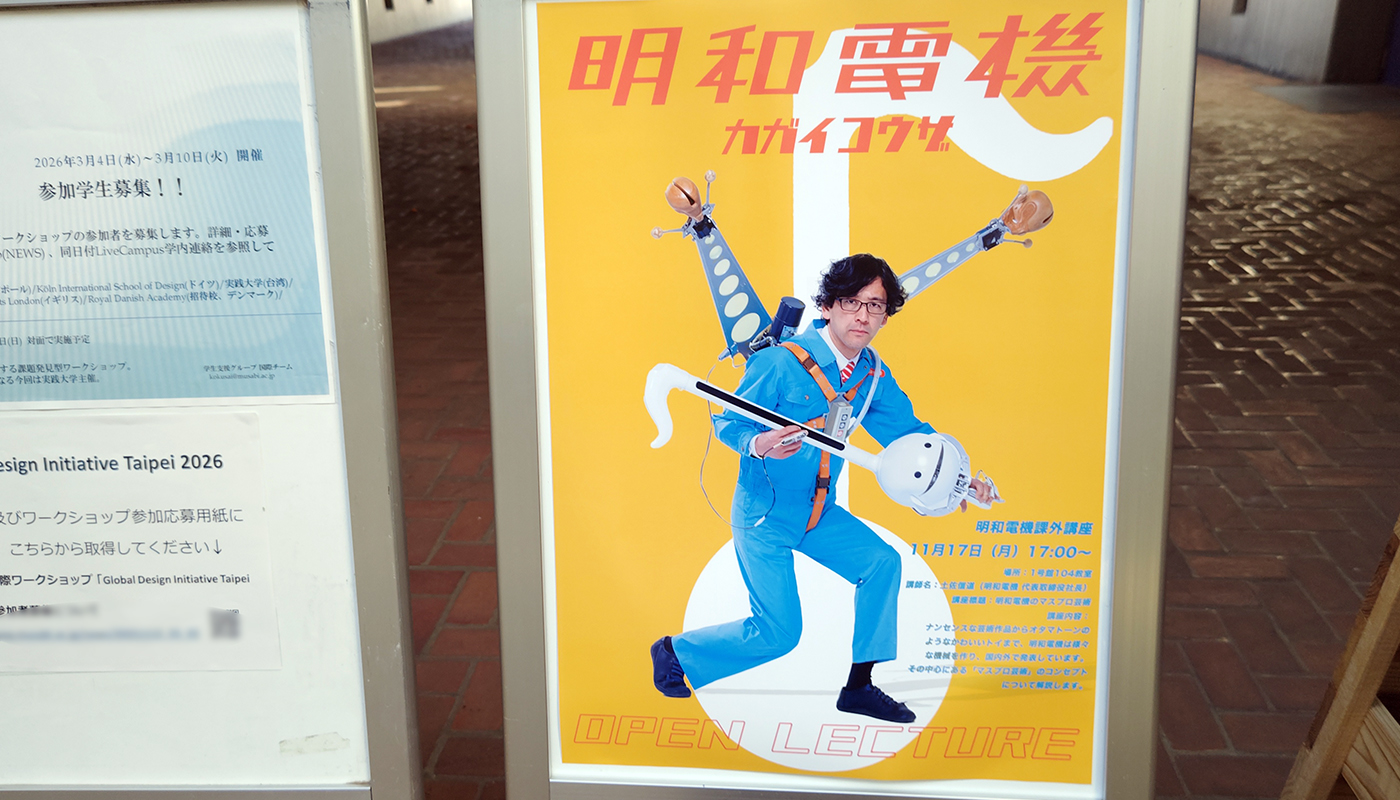 おっ。今日は映像学科主催の明和電機の課外講座があるんだ。