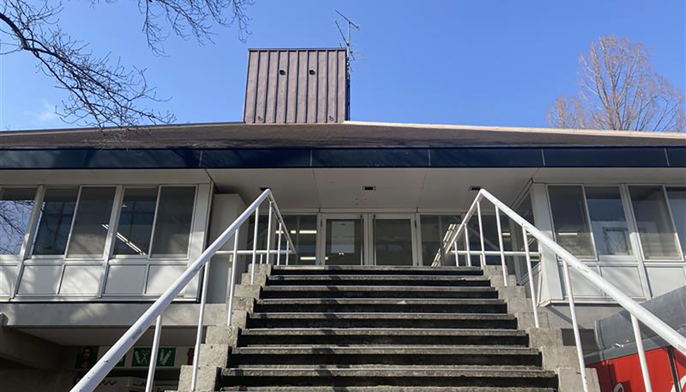 現在の図書館側から見た鷹の台ホール。