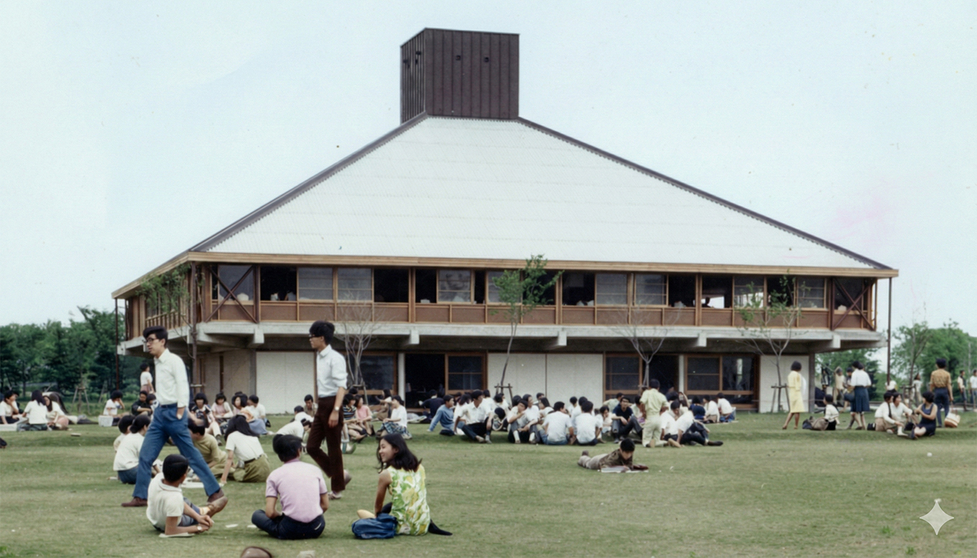鷹の台ホールは1967年竣工で、こちらが竣工当時の写真↓
