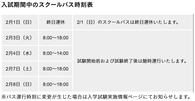 2月1日はスクールバスが終日運休しています。