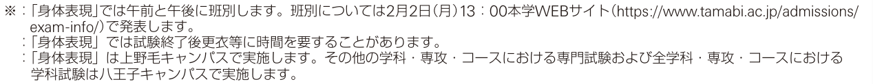 ただ、注釈にあるように「美術学科、デザイン・工芸学科」と「アート・デザイン表現学科の領域、共創デザイン学科」とを併願する方は学力試験を杉並キャンパスで受験することになります。