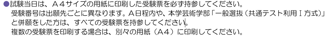 ちなみにムサビの受験票は「A4の白い紙にそのままプリント(拡大縮小したらダメ)し、指定サイズにカット」「スマホで見せるのはダメ。印刷したもの」と指示があるのをお忘れなく。