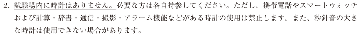 ・試験時はスマホ含め電子機器は使用できない。スマートウォッチもダメ