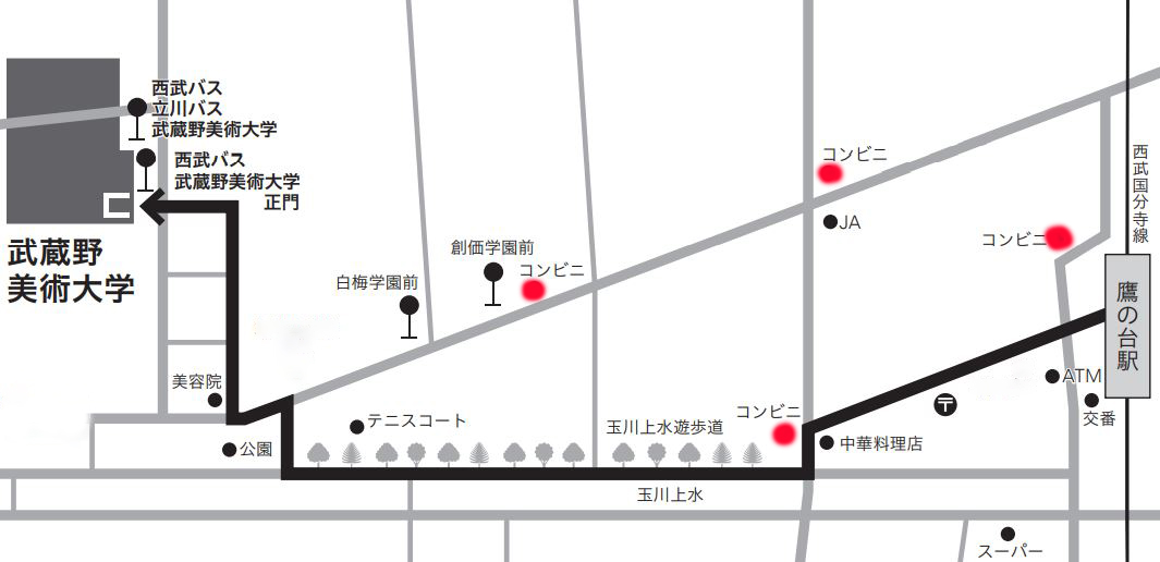 ムサビ受験生のために、鷹の台駅近辺のコンビニマップを作ってみました。