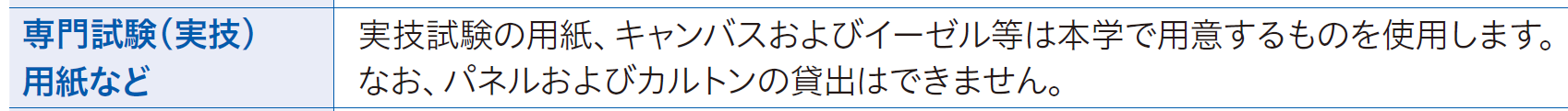 キャンバスに描く油絵専攻「油絵」試験以外、全部の実技試験に「パネルまたはカルトン(とクリップ等)」と書いてあるのがわかるはず。(試験によって必要サイズが微妙に違うので要注意)