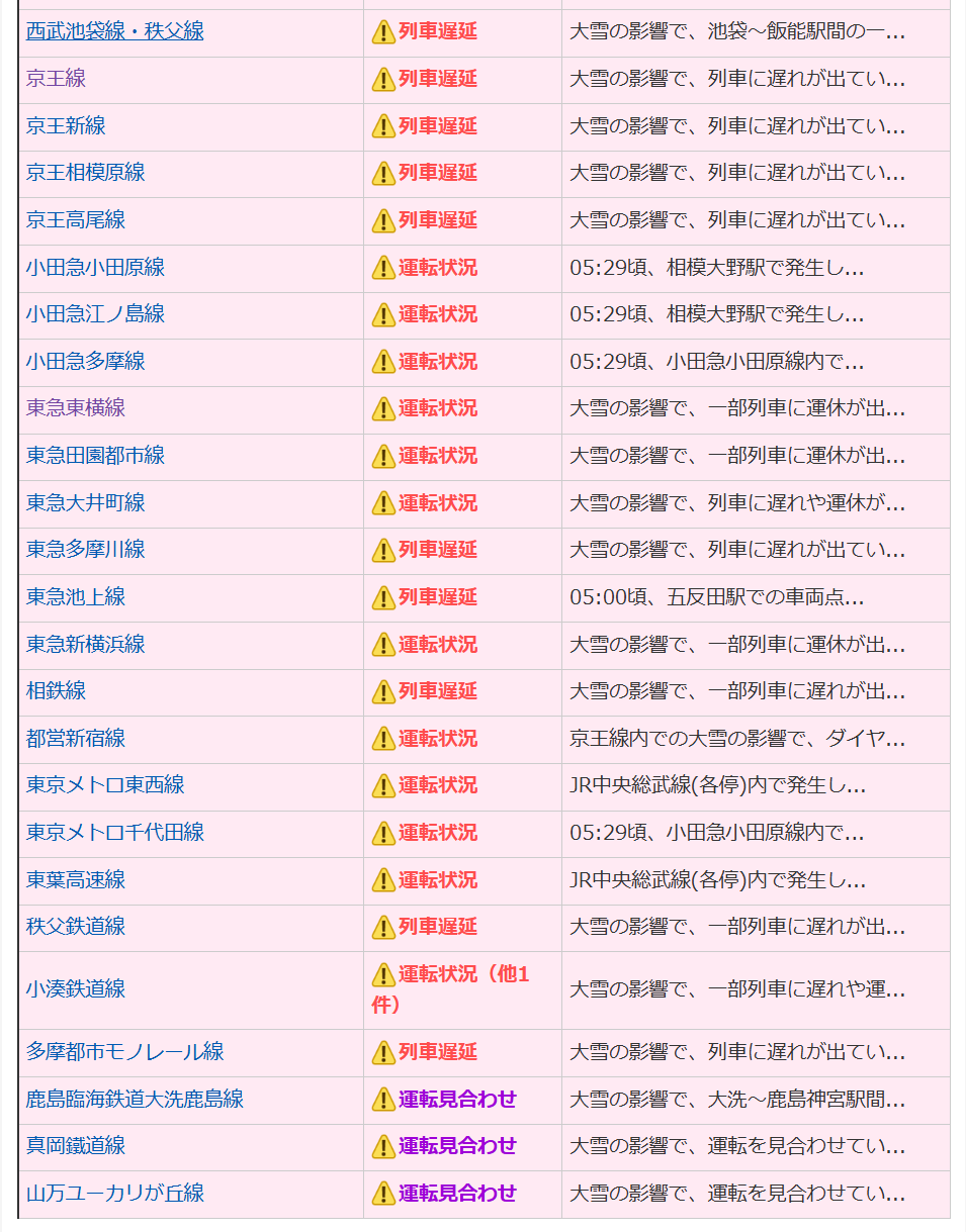 朝7時現在の電車の状況なんて