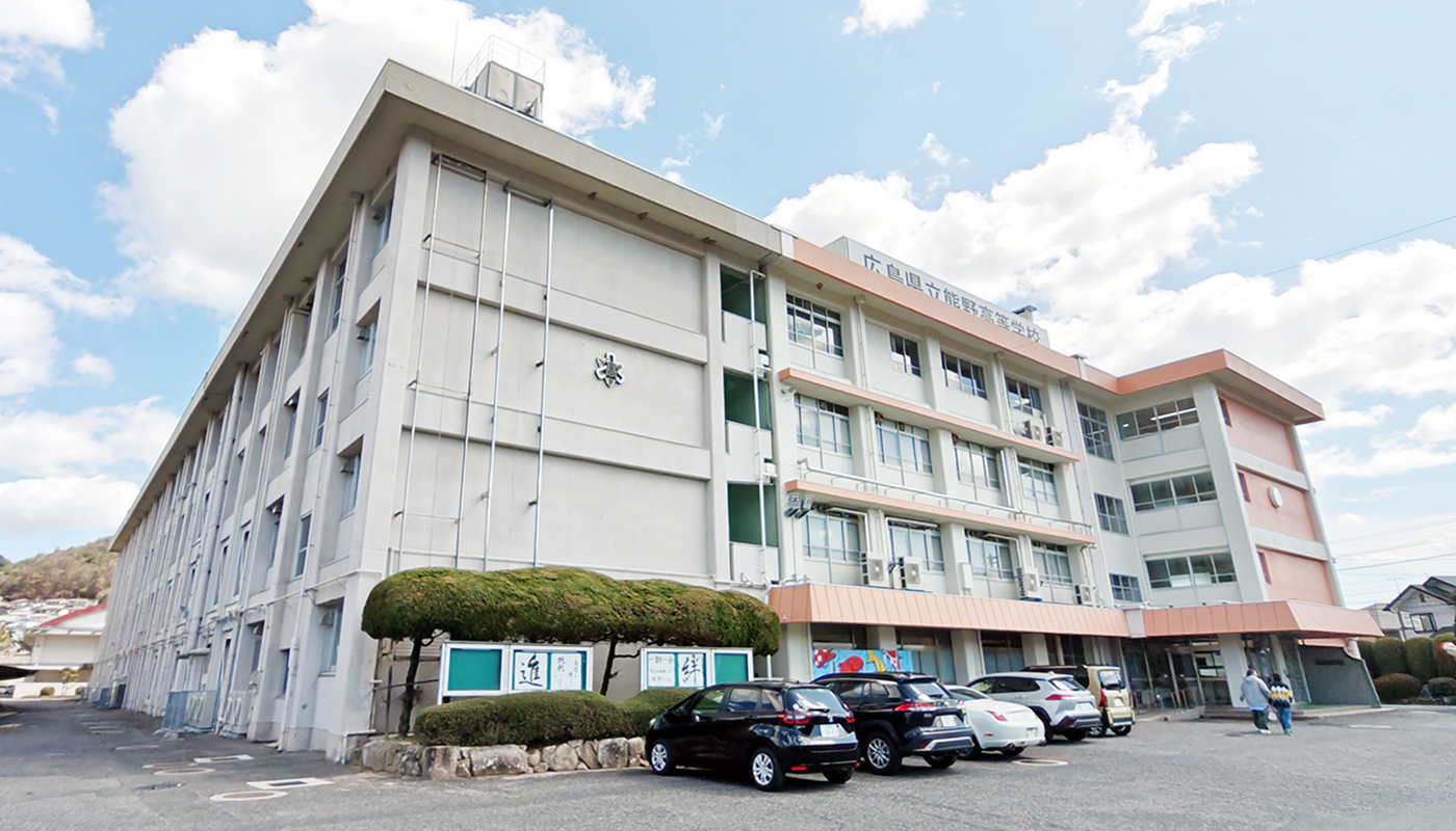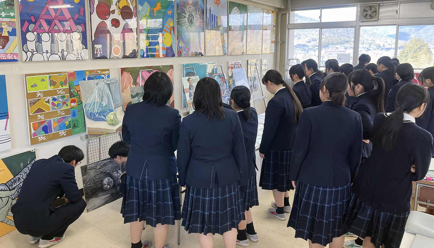 「熊野筆」が有名な熊野に位置する県内唯一の芸術類型がある高校で、音楽、書道、美術、アートディレクションの4つのコースがあります。