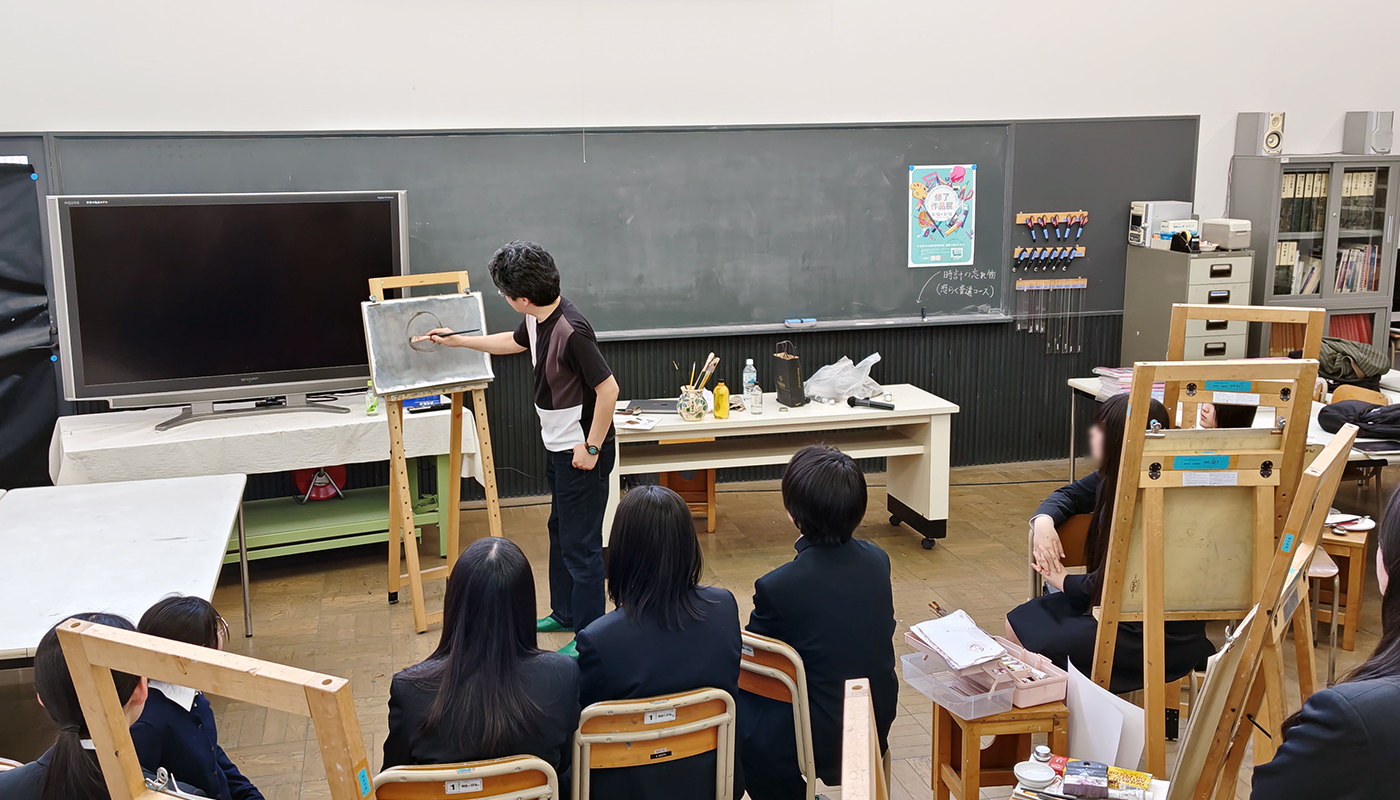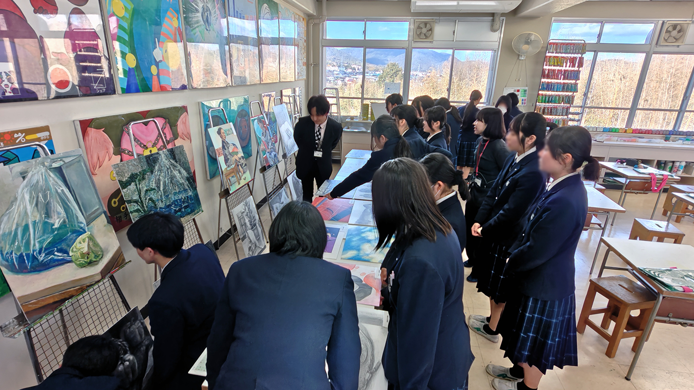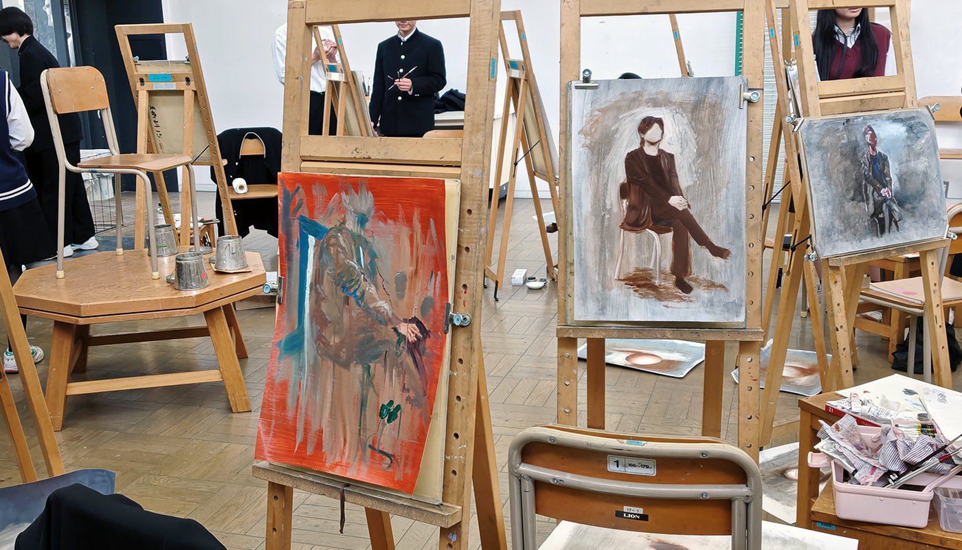 レクチャーやワークショップぐらいのことは高校でもやるんですが、油絵の具を使ったかなり本格的な高校での実習って、手羽は初めての経験。