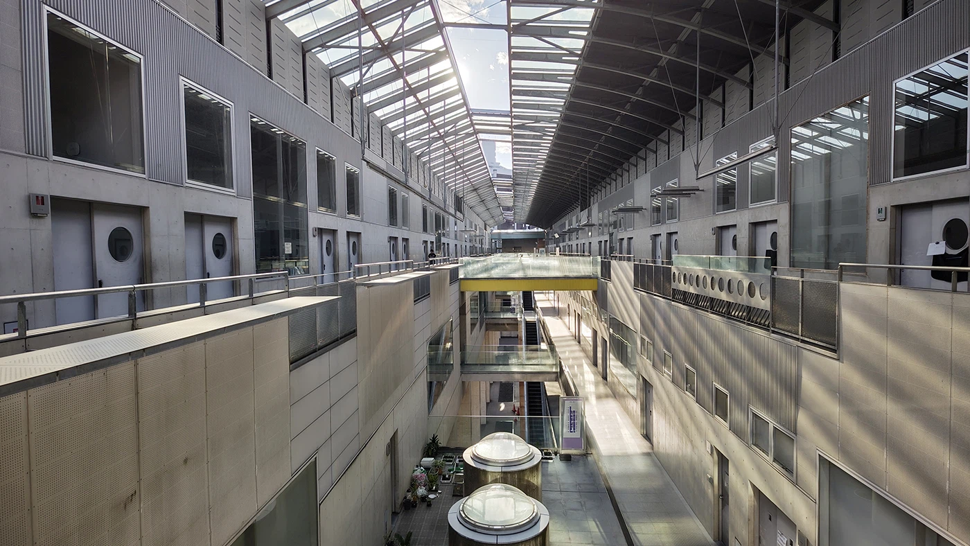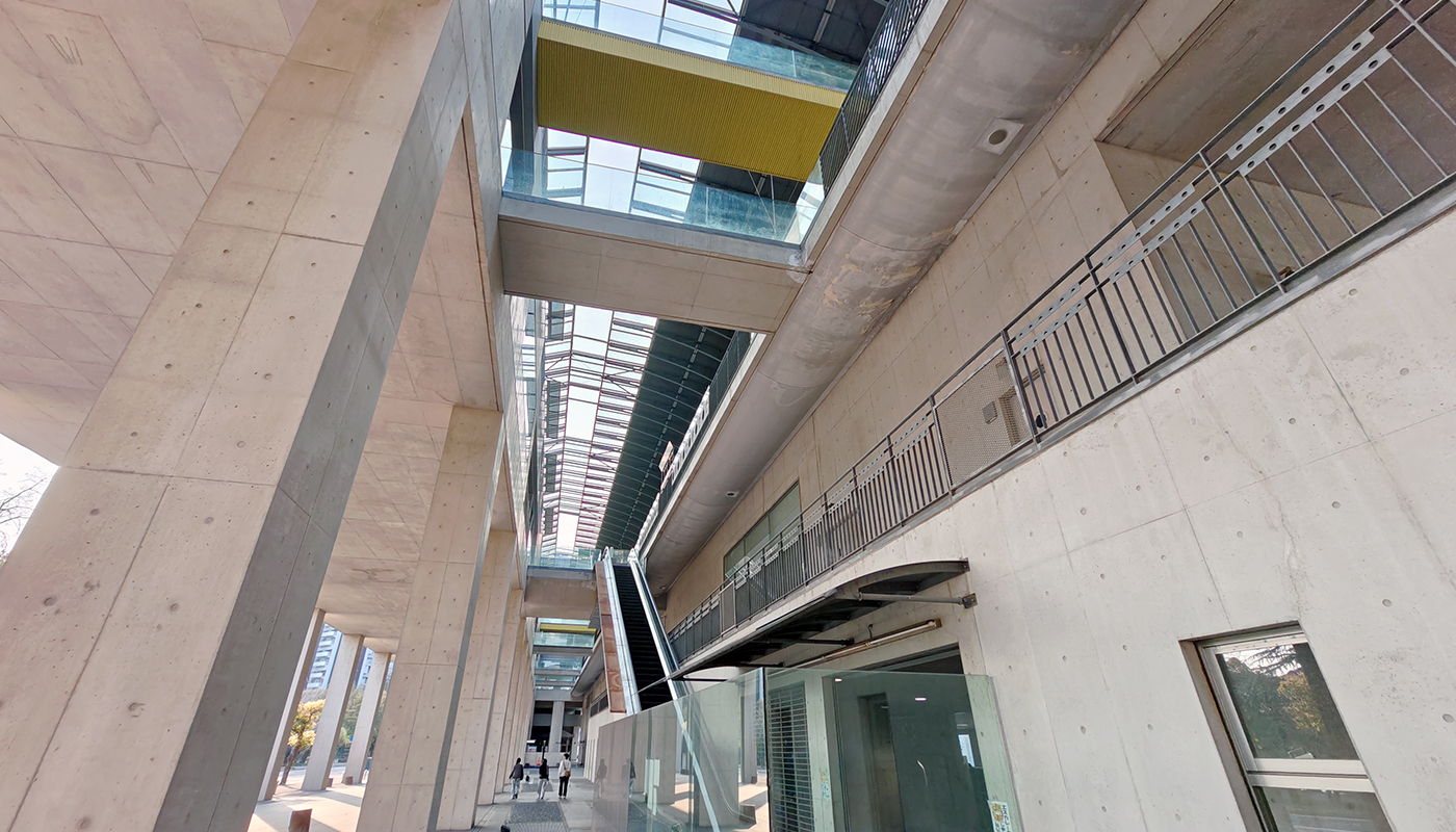 2000年にできた校舎がほんと立派で、大きな吹き抜け構造になっていて、ムサビ10号館を豪華にしたような感じ。設計は梅田スカイビルや京都駅ビル、札幌ドームなどをされた原広司さん。