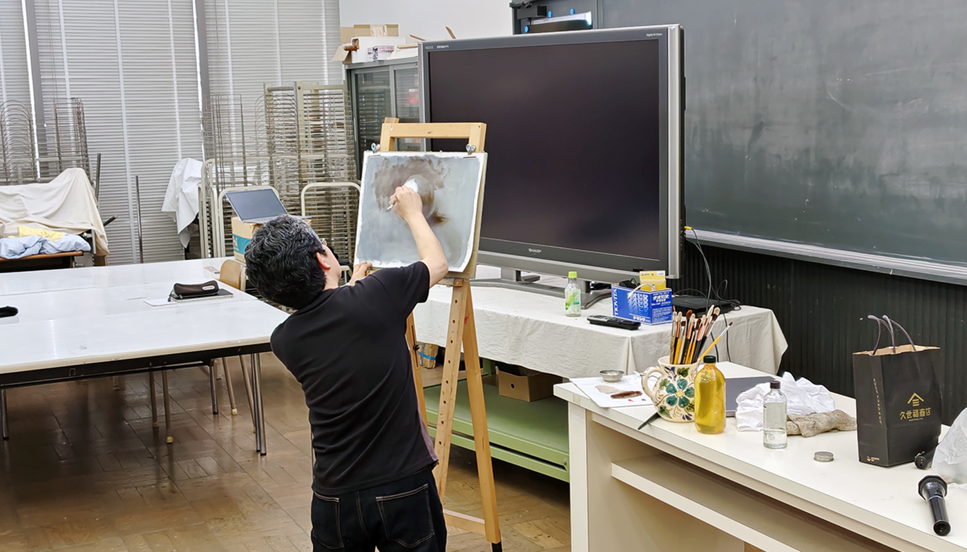 この日は油絵学科・小尾修先生、広報スタッフと一緒に