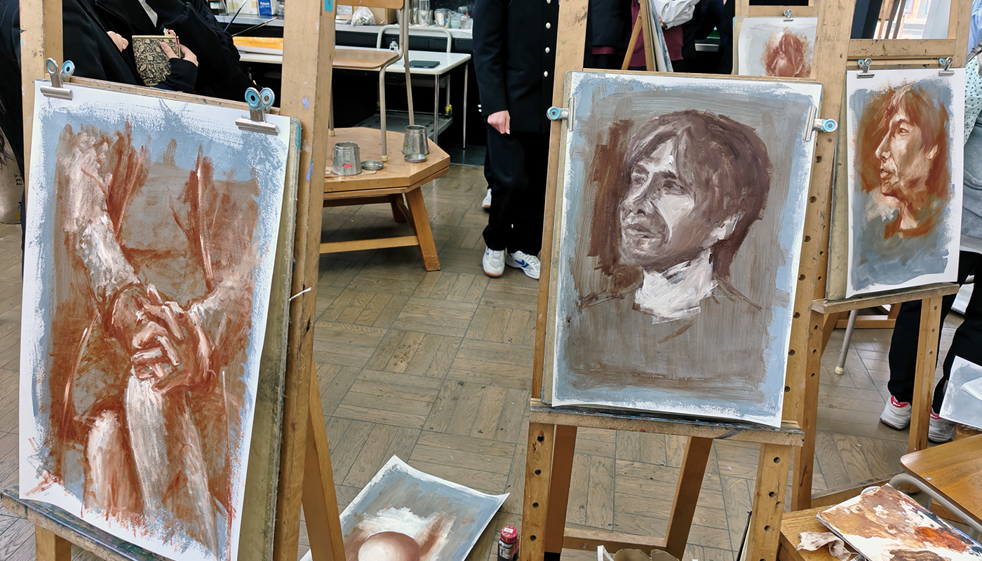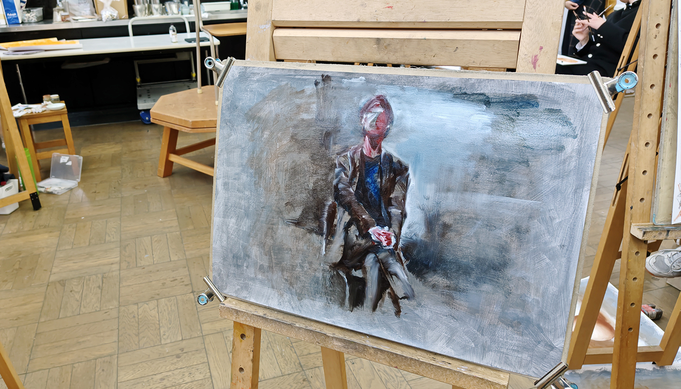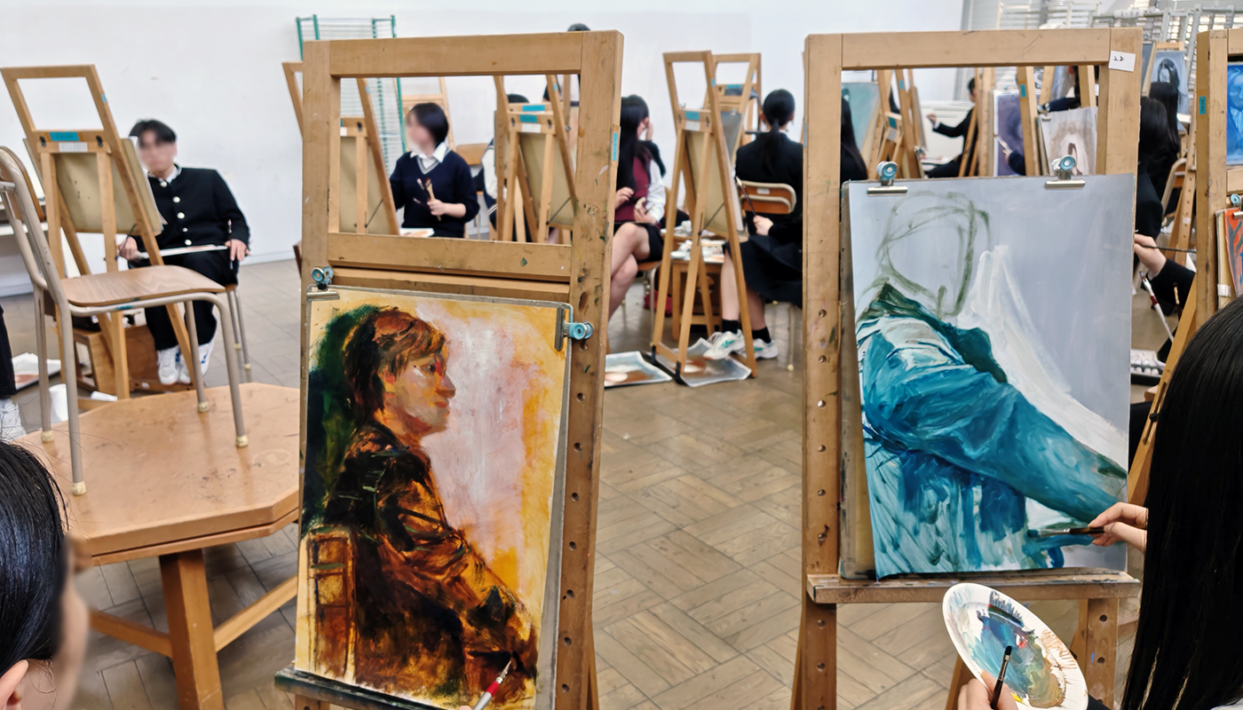 1年次に全員油絵を1枚は描いてるそうですが、半分ぐらいは日本画や彫刻、デザインなどの希望者なので油を4枚以上描き続けてる生徒さんは少数。