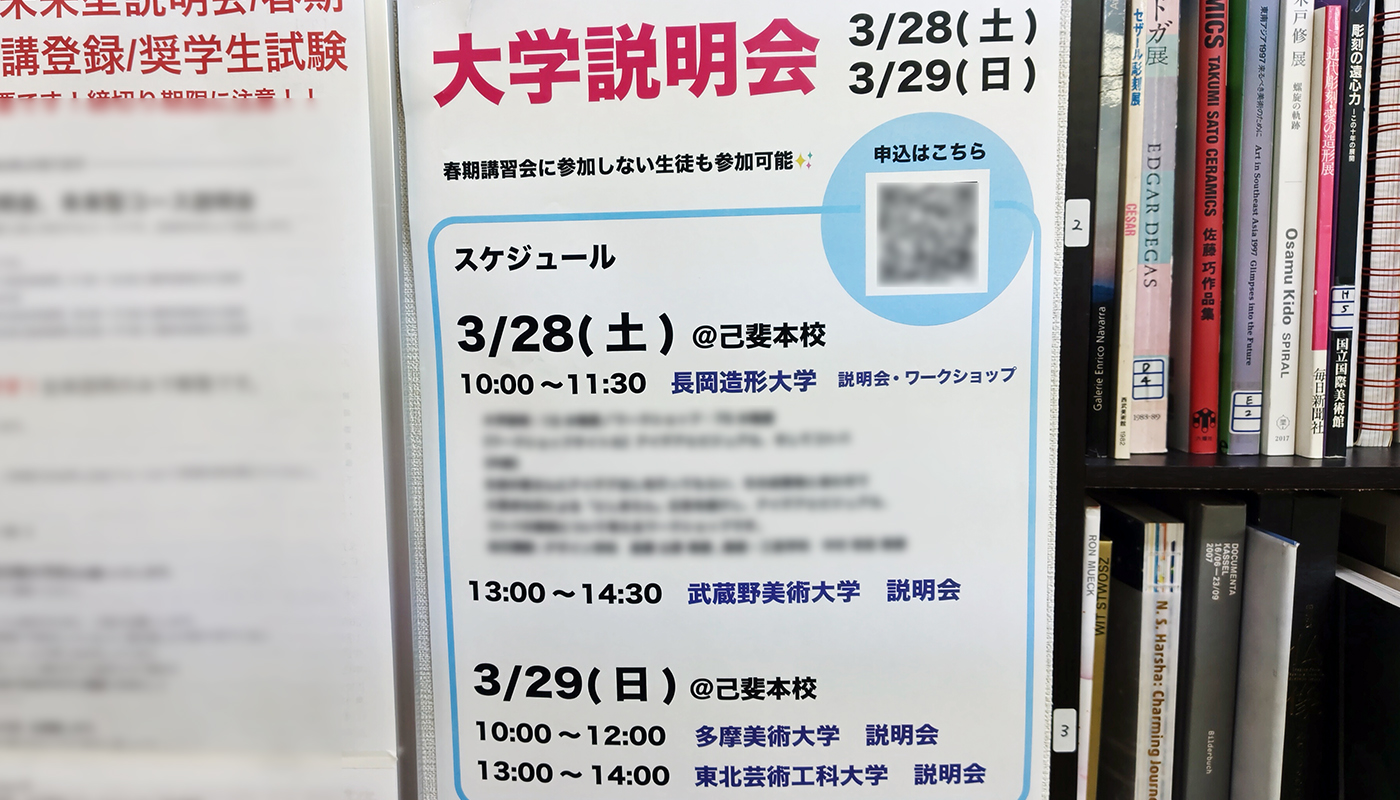 「大学説明なんかより教授に絵を見てほしい」という生徒さんの方が多いはずだし、そっちの方が生徒さんにとっての価値があるはずなので、教員と訪問する時はできるだけ講評に時間を割くようにしています。
