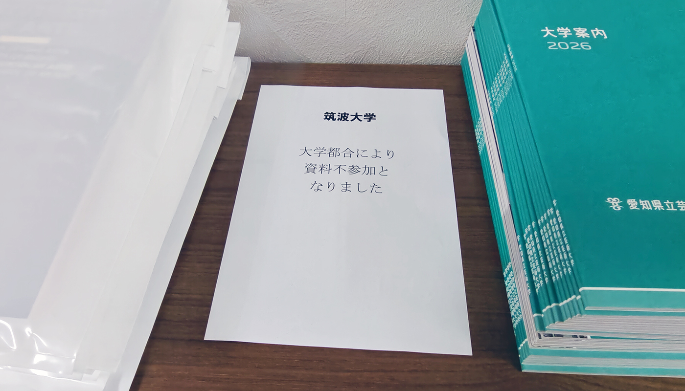 リアルで参加できなかった大学は「資料参加」という形になっていて、廊下に資料がおかれてます。